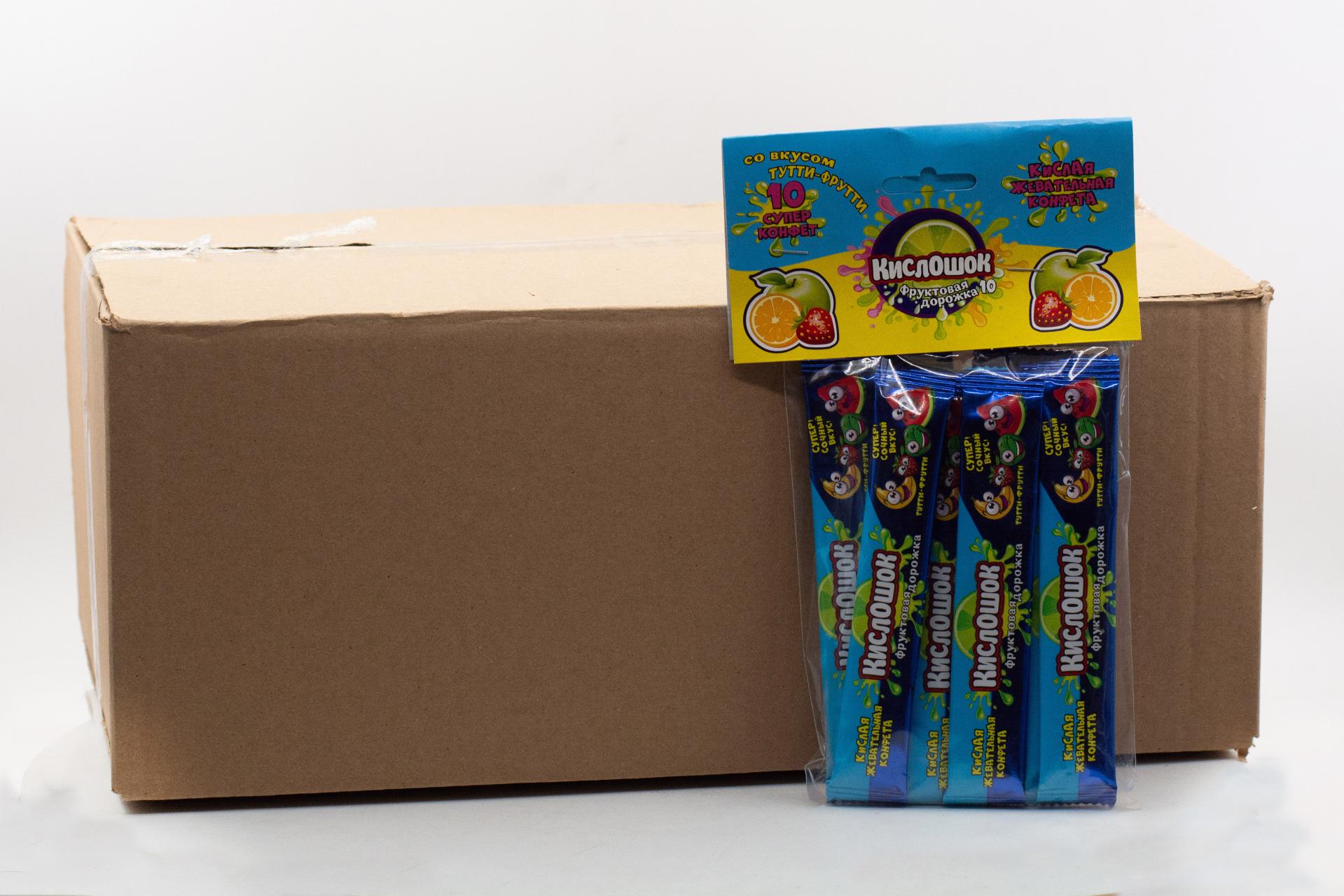 Кислая жевательная конфета Кислошок - фруктовая дорожка 10 со вкусом тутти-фрутти (Россия) 120г0,00 руб. за штуку (в упак. 36 шт.) |