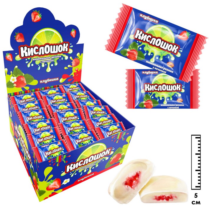 Жевательная резинка Кислошок с начинкой клубника (Россия) 4г2,37 руб. за штуку (в упак. 100 шт.) |